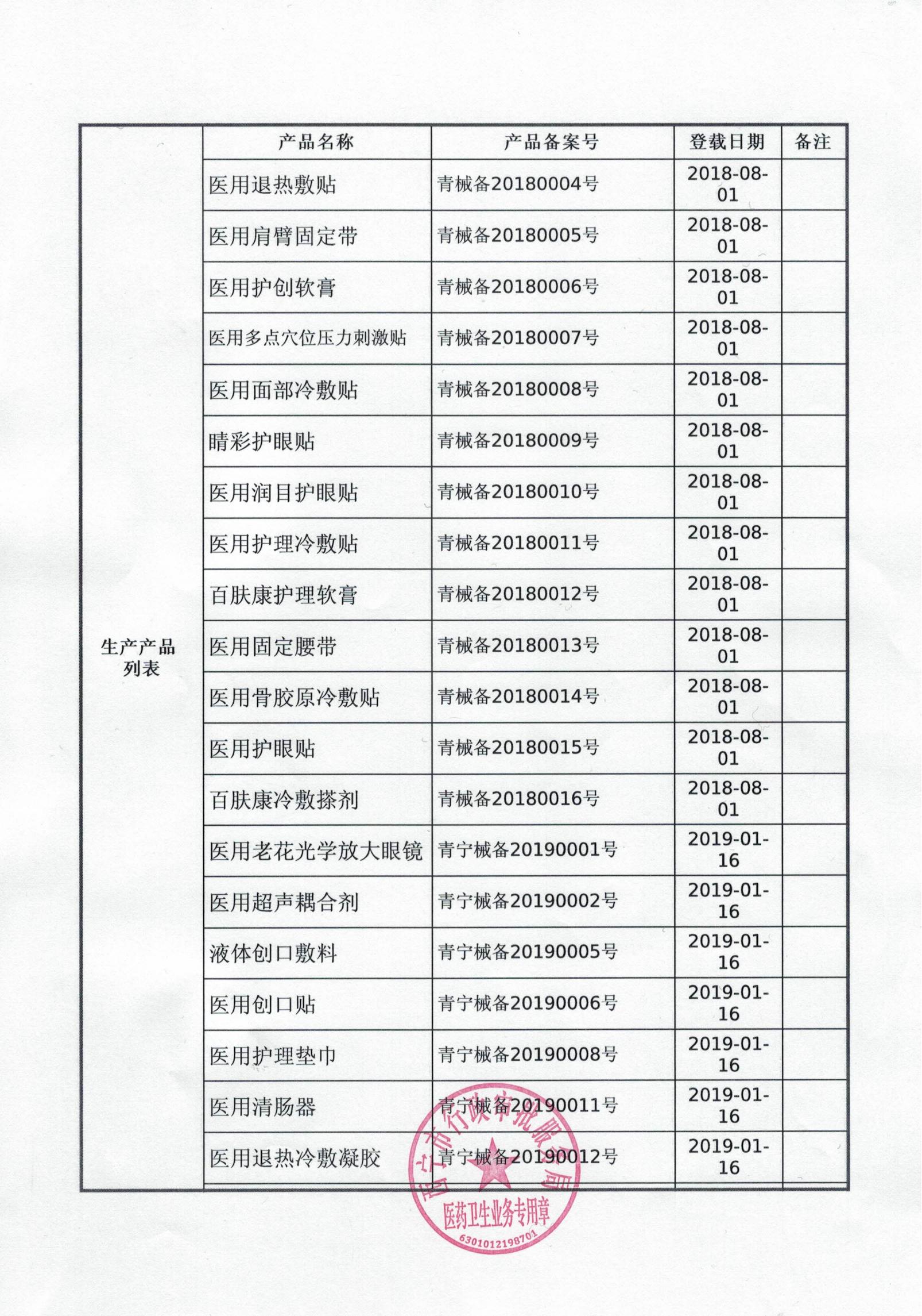 第一類醫(yī)療器械生產(chǎn)備案憑證