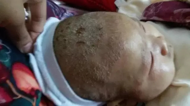 這張圖片中寶寶臉上是較典型的膿皰疹,出現(xiàn)熱疹后如果沒有控制好嚴重下去繼發(fā)感染就會形成膿皰疹。