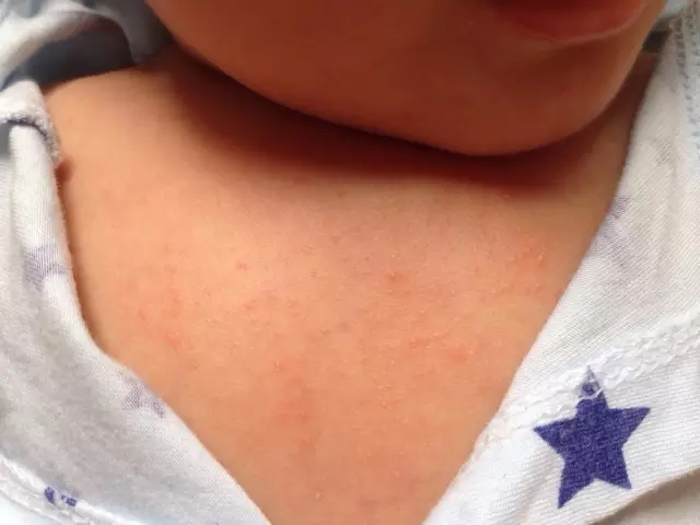 這是軀干部位的幼兒急疹,和痱子很像。